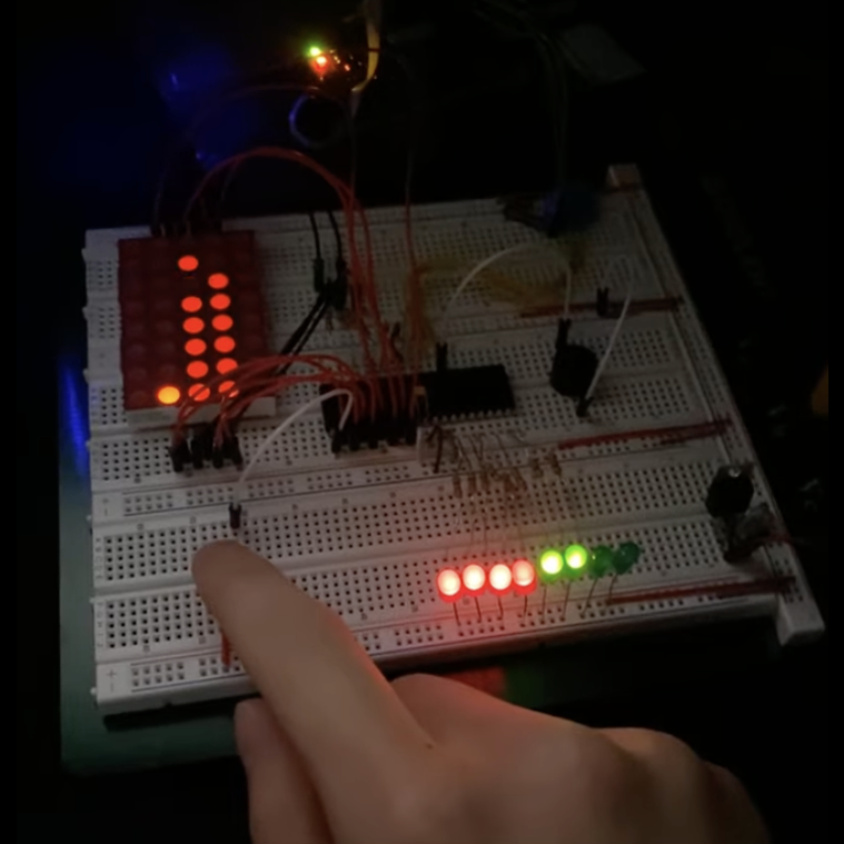 Incorporated an LED Matrix and LEDs for display and a button for user input; Produced sound effects and victory and game over songs through speaker output via pulse-width modulation